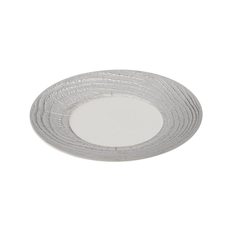 Arborescence talíř zdokonalí vaše kulinářské umění svým jedinečným designem napodobujícím kůru stromu, kterou zdobí platina. Kromě estetické stránky vás nadchne i svou kvalitou, která odpovídá náročným požadavkům profesionálních šéfkuchařů. Je tak ideální volbou pro servírování jakýchkoliv gurmánských jídel. Kombinace slonové kosti s platinou vám umožní hrát si s texturami a kontrasty. Jeho velká plocha pomůže vnést do vašich jídel ještě více elegance. Protože talíř zdobí platinové prvky, neměl by být používaný v troubě nebo mikrovlnce a doporučuje se pouze ruční mytí.Talíř klubový pr. 31 cm, platinový