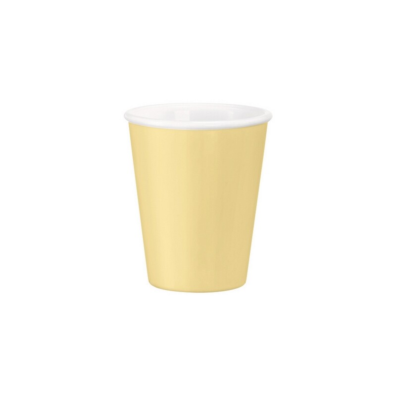 Aromateca šálek v pastelově žluté oživí váš jídelní stůl. Díky svému materiálu jsou šálky odolné vůči odštípnutí a poškrábání a poskytují naprostou hygienu. Kolekce je ideální pro použití ve školských či zdravotnických zařízeních.Šálek 9,5 cl – žlutá