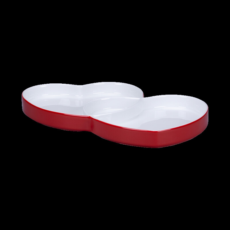 Talíř hluboký dělený ve tvaru srdce, 29 × 26 cm, červený