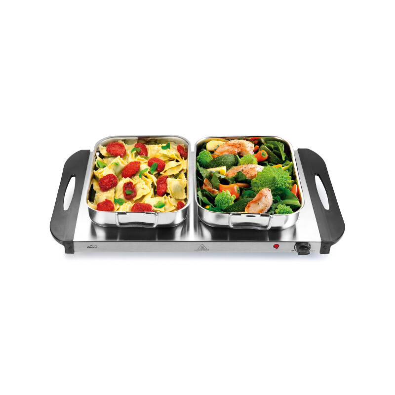 Pokud hledáte elegantní a jednoduchou alternativu k chafingu, tak ohřevná deska představuje tu správnou volbu. Součástí je i termostat na nastavení teploty.Deska ohřevná elektrická