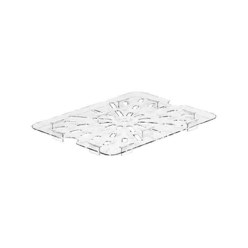 Falešné dno na polykarbonátové a polypropylenové gastronádoby CAMBRO chrání vaše jídlo a jeho chuť. Pomocí děr odtékají tekutiny, a proto je ideální variantou například ke skladování rozmrazujícího se masa nebo mořských plodů na ledě. Tekutiny se tak nedotýkají pokrmů, ale zůstanou na dně nádoby, a jídlo se tak nezkazí.Falešné dno pro gastronádobu GN 1/2