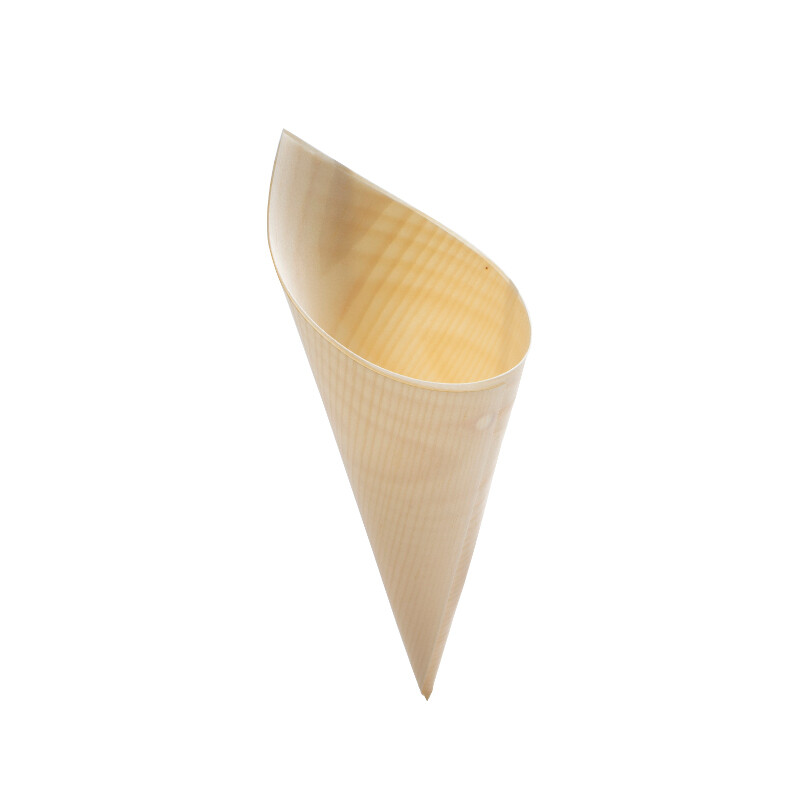 Potřebujete jednorázové kornouty na podávání drobných pokrmů, ale hledáte něco spolehlivějšího, než papír?Pak se pro vás jeví jako perfektní řešení tato bambusová varianta od značky Verlo. Toto dřevo je pevnější a zanechává menší ekologickou stopu než běžně používané materiály.Kornout dřevěný 9 × 12,5 cm (50 ks)