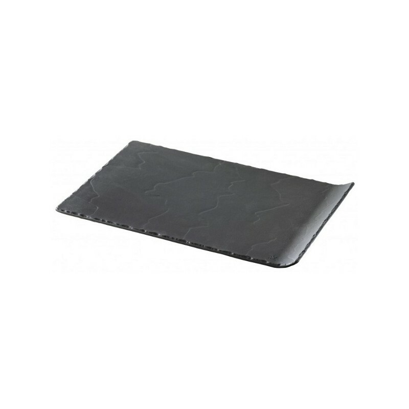 Basalt talíř obdélný spojuje originální design, kvalitu a praktičnost tak, aby splnil vysoké nároky profesionálních šéfkuchařů. Využijete ho při servírování dezertů ve skle, mini dezertů, tapas a sýrových kuliček. Je také ideální volbou pro pizzu, sýry, lahůdky, dezerty, maso, ryby a hlavní chody. Ať už na něj položíte cokoliv, společně s talířem to bude vypadat dokonale. Také je velmi praktický a jeho zahnutý roh vám usnadní servírování.Talíř obdélný zahnutý 33,2 × 20 cm